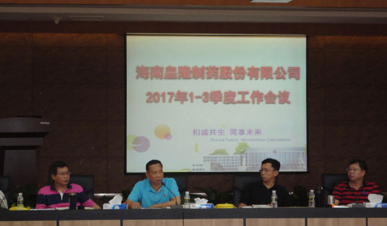 在這個(gè)寓意希望和豐收的季節(jié)里,海南皇隆制藥股份有限公司2017年前三季度工作報(bào)告分析會(huì)于14日在公司二樓大會(huì)議室召開(kāi),會(huì)議由陳益智總經(jīng)理主持,部門(mén)負(fù)責(zé)人及以上人員出席會(huì)議。