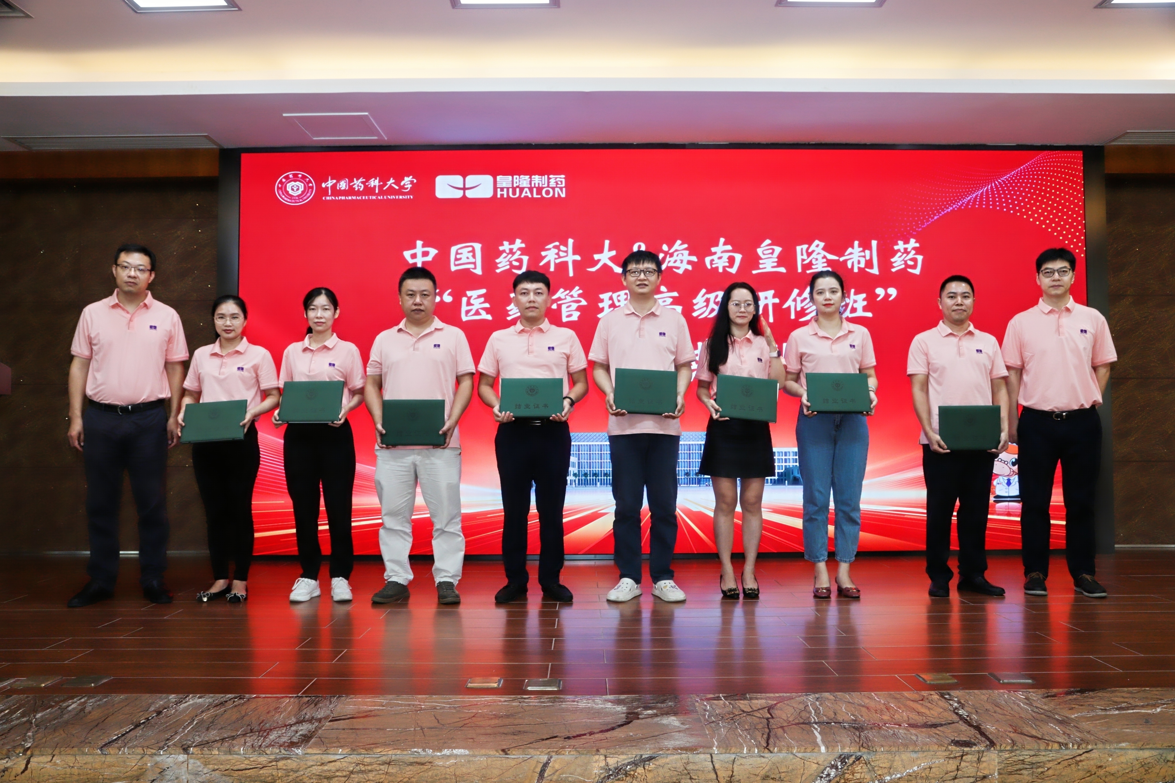 7月23日上午,中國藥科大學“專業(yè)學位研究生院級實踐基地”揭牌儀式暨中國藥科大學&海南皇隆制藥“醫(yī)藥管理高級研修班”結業(yè)典禮在海南皇隆制藥股份有限公司成功舉行。??趪腋咝录夹g產(chǎn)業(yè)開發(fā)區(qū)工委副書記、管委會主任李杉、中國藥科大學研究生院副院長李飛、中國藥科大學國際醫(yī)藥商學會副院長徐偉、海南皇隆制藥股份有限公司董事長陳益智、公司管理層以及54名學員共同參加了本次儀式。